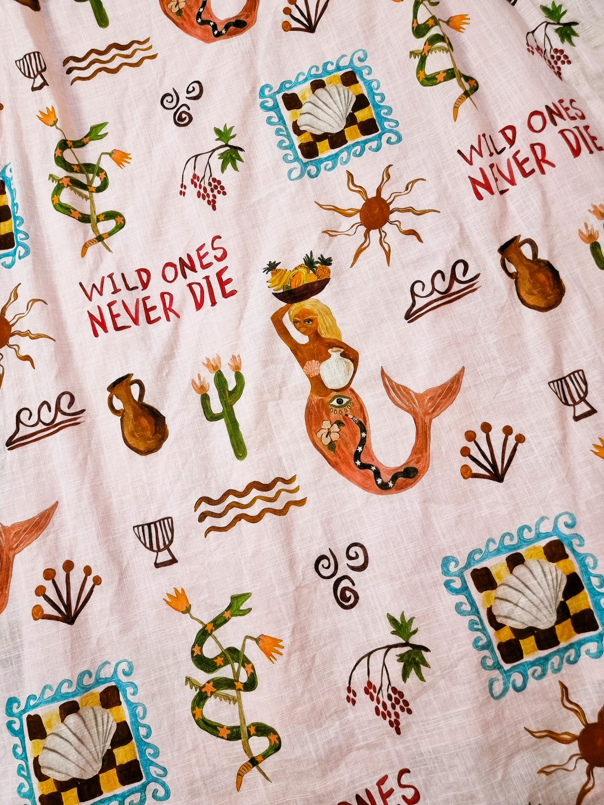 Exclusive Wild Ones mermaid and coastal print on a blush base